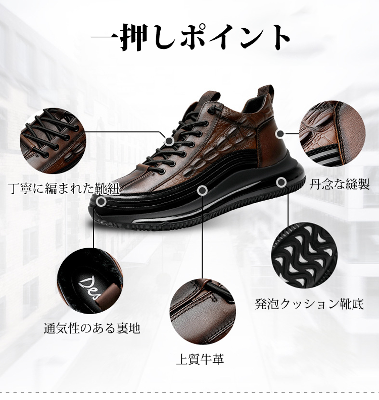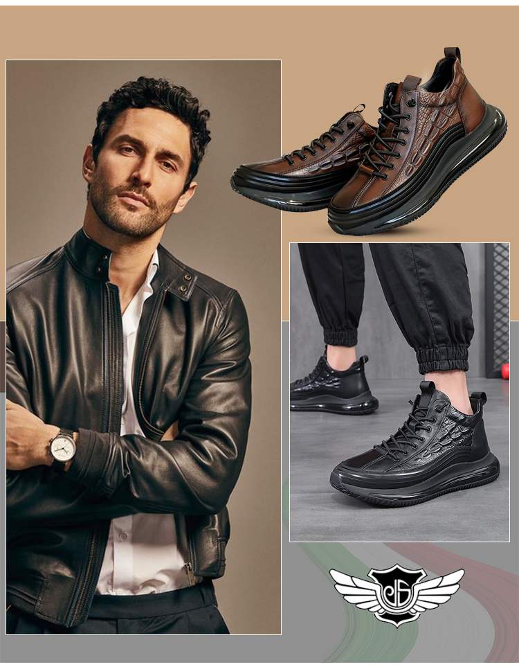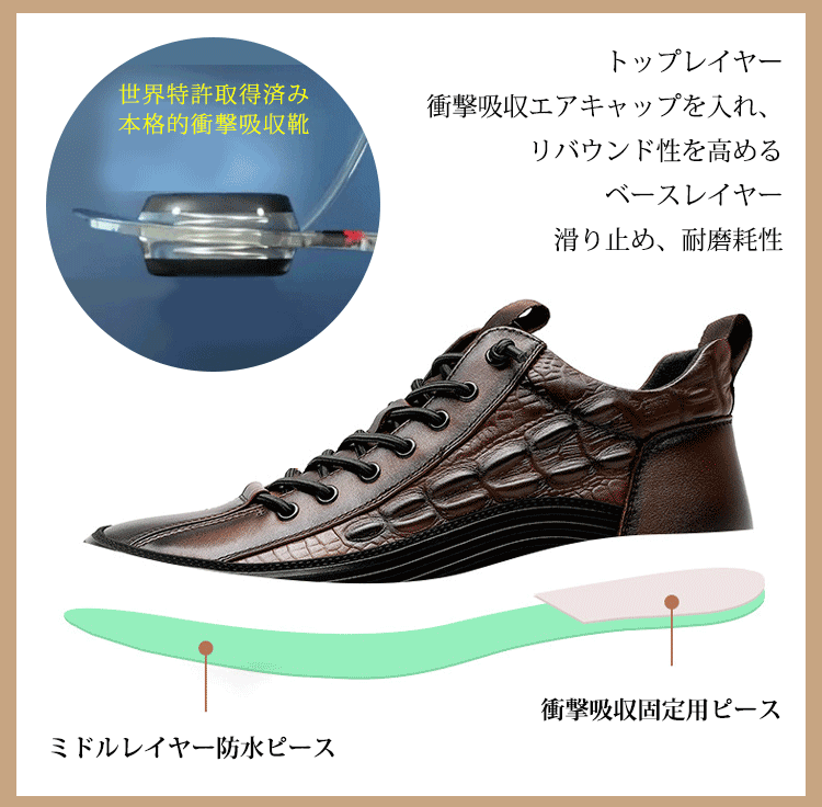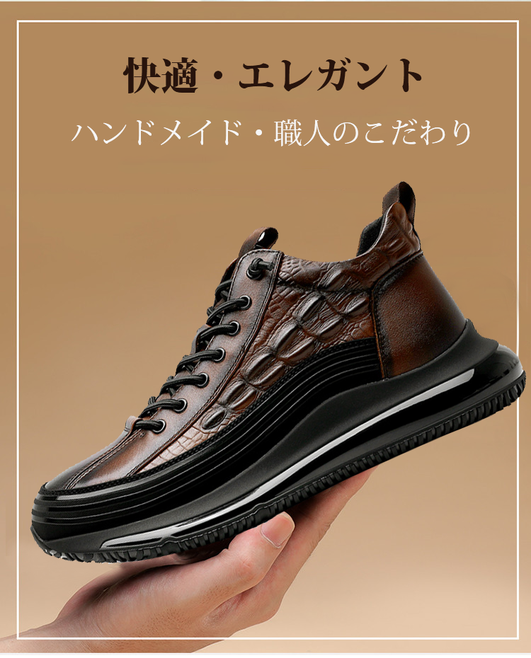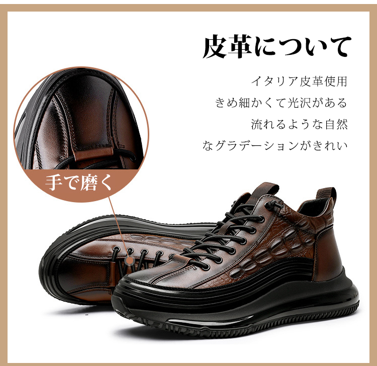 イタリアプチ贅沢ワニ柄 厚底クッションカジュアルメンズシューズ