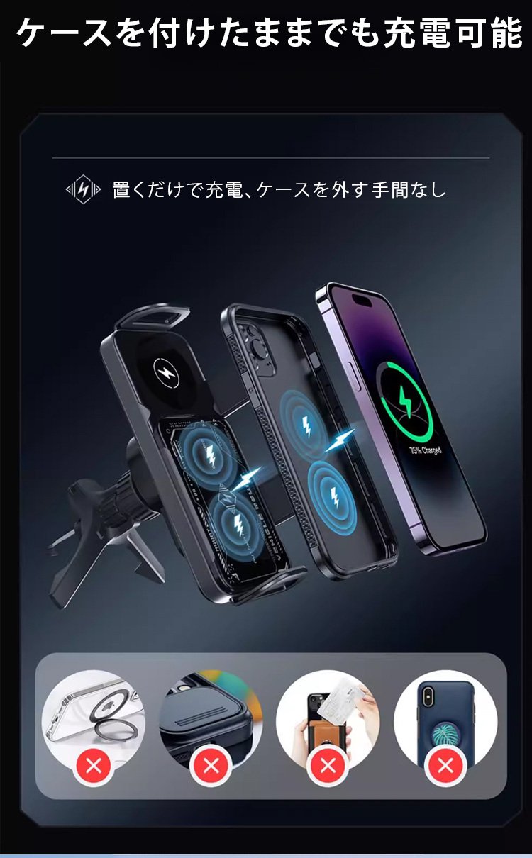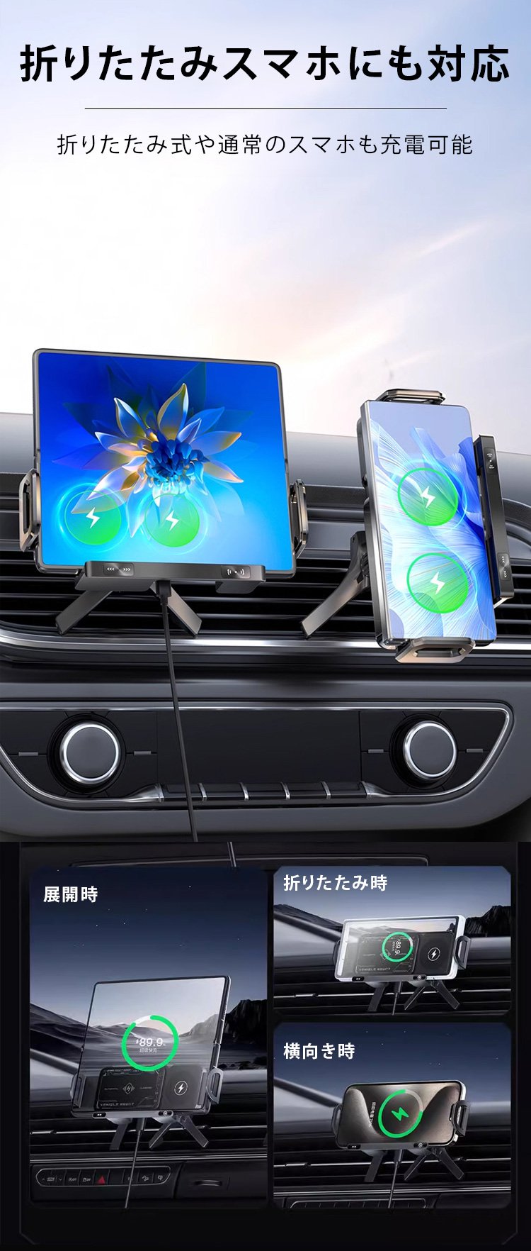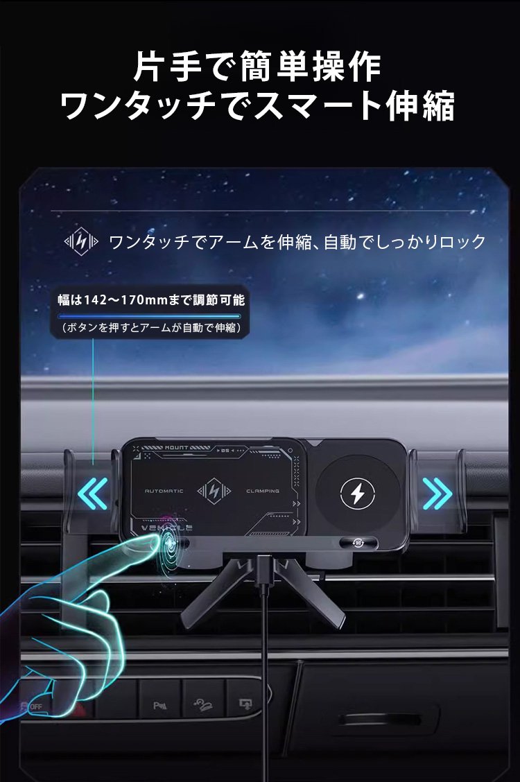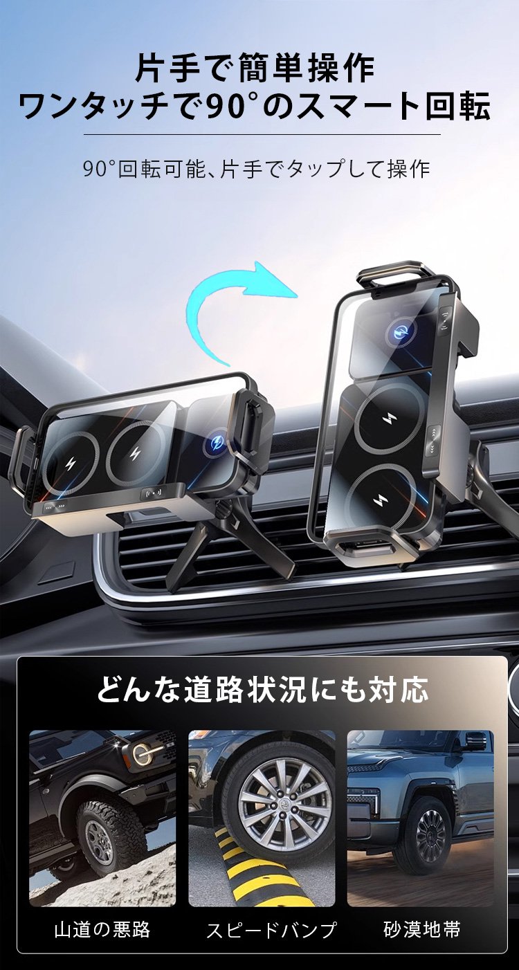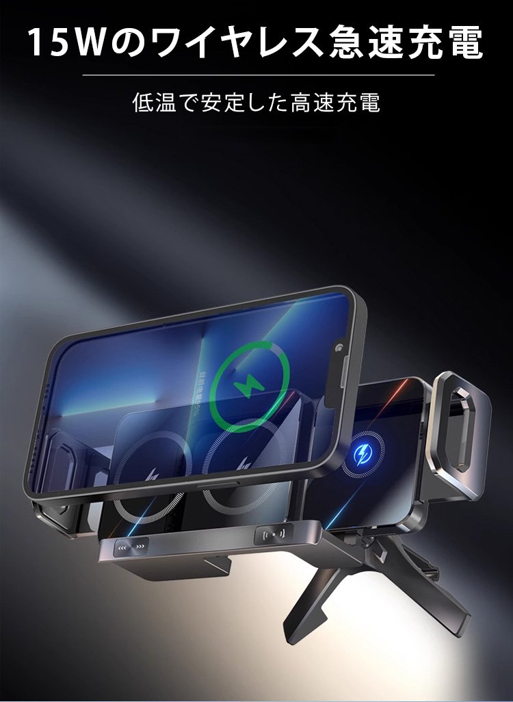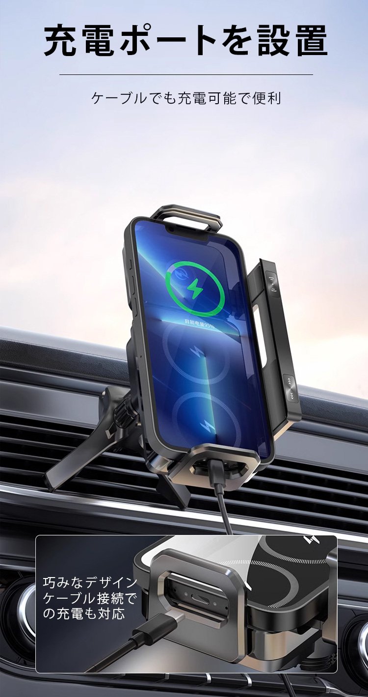 ワイヤレス充電機能搭載の車載スマホホルダー