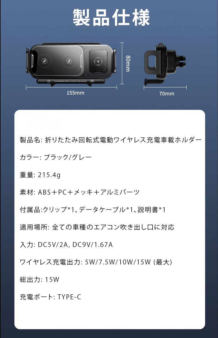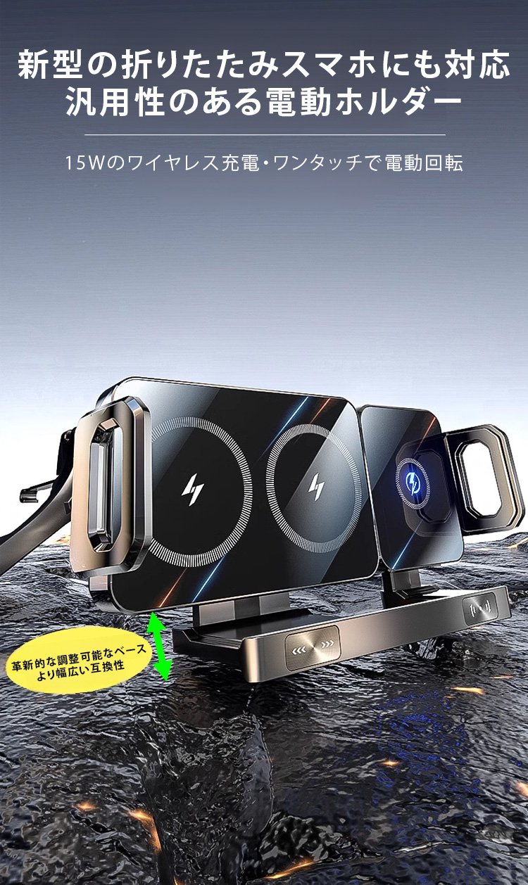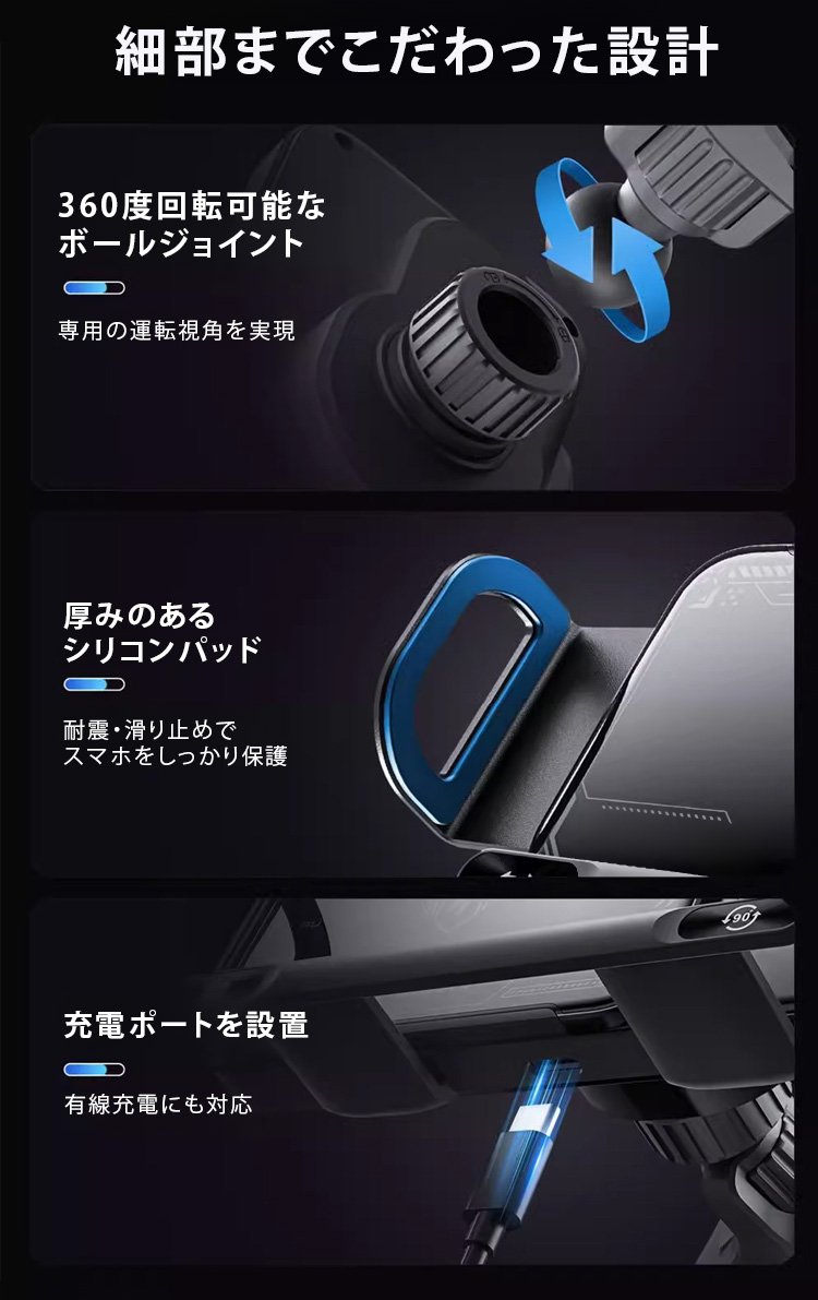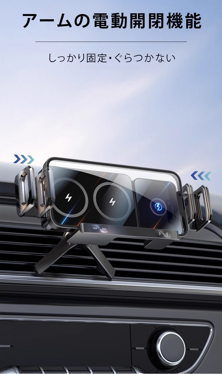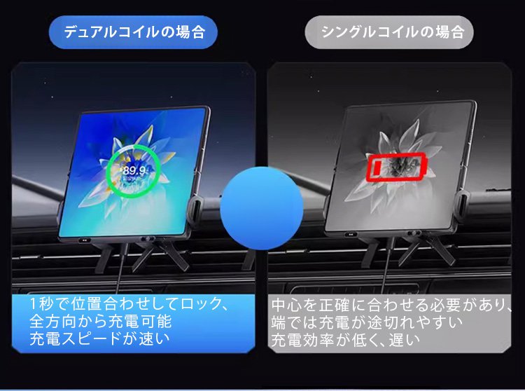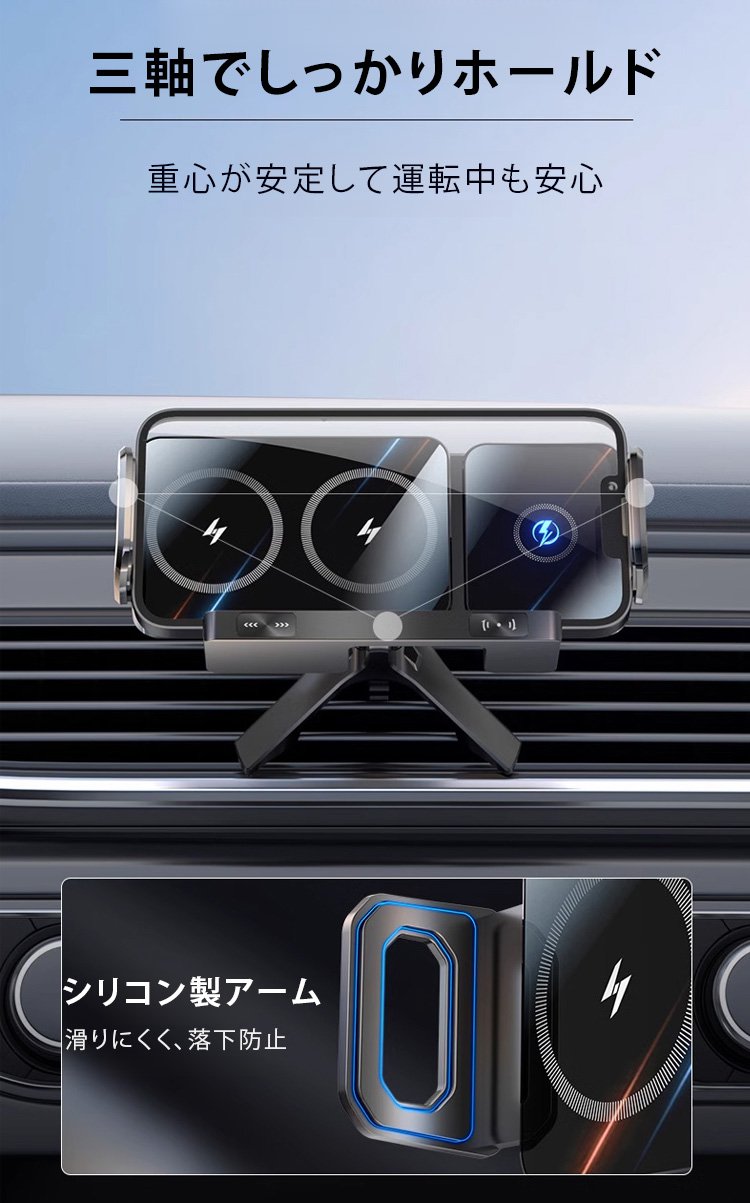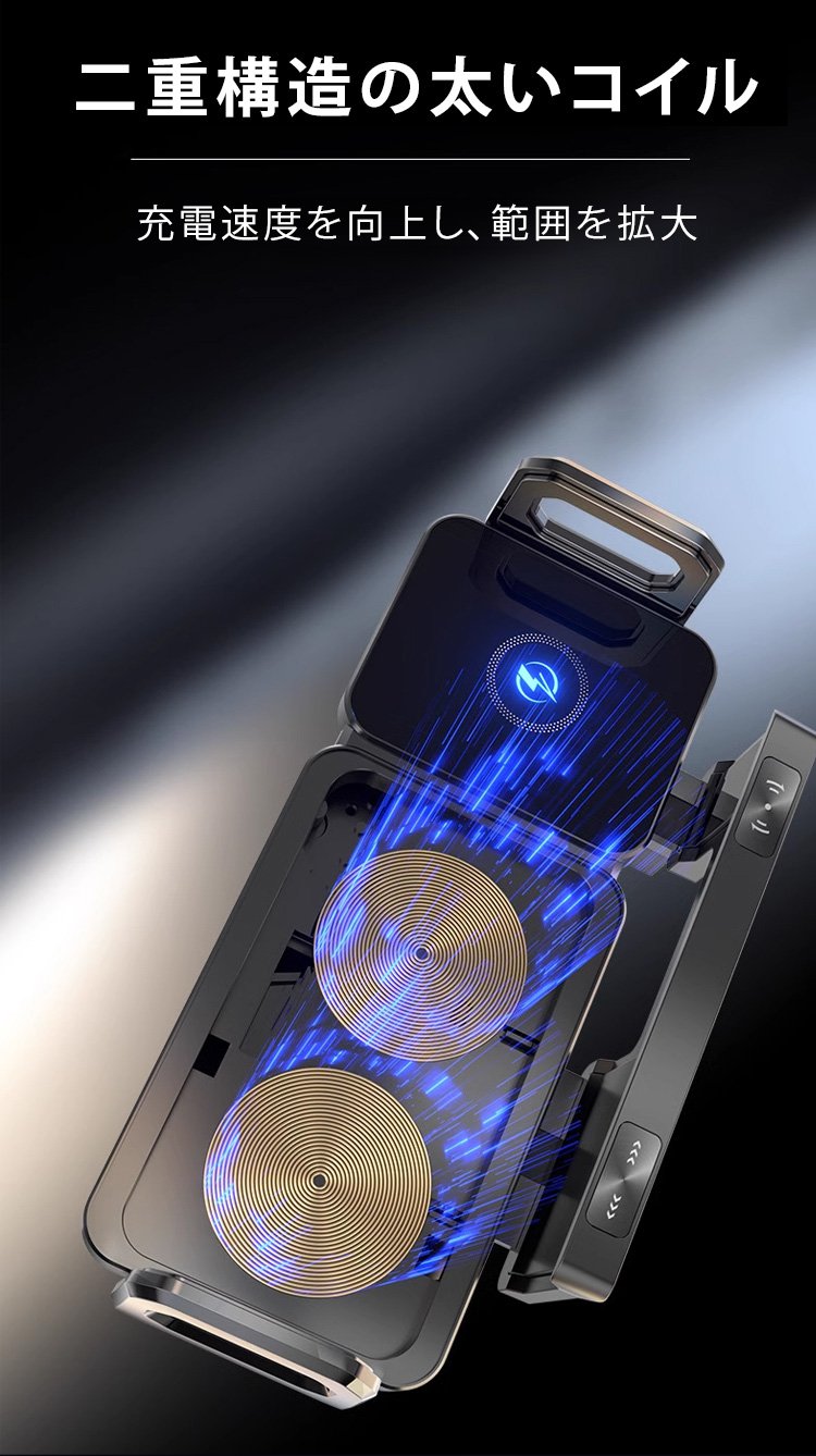ワイヤレス充電機能搭載の車載スマホホルダー
